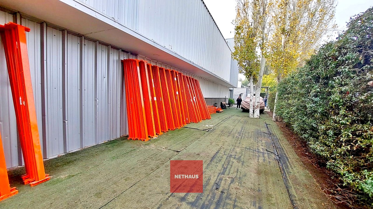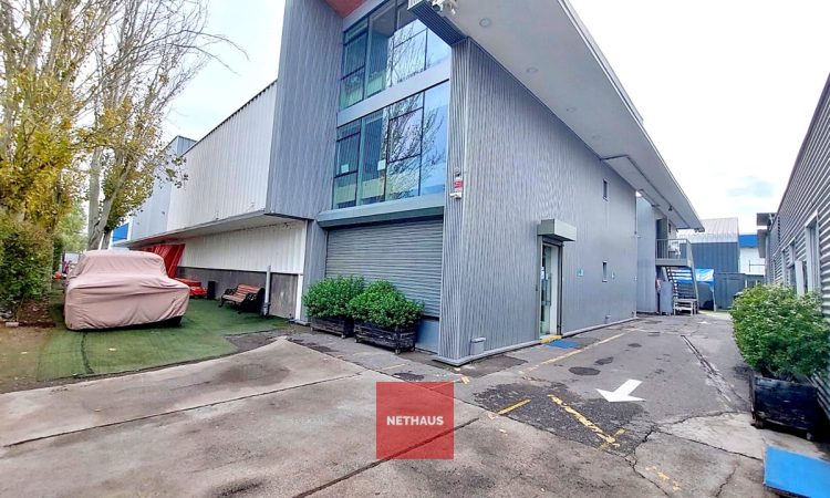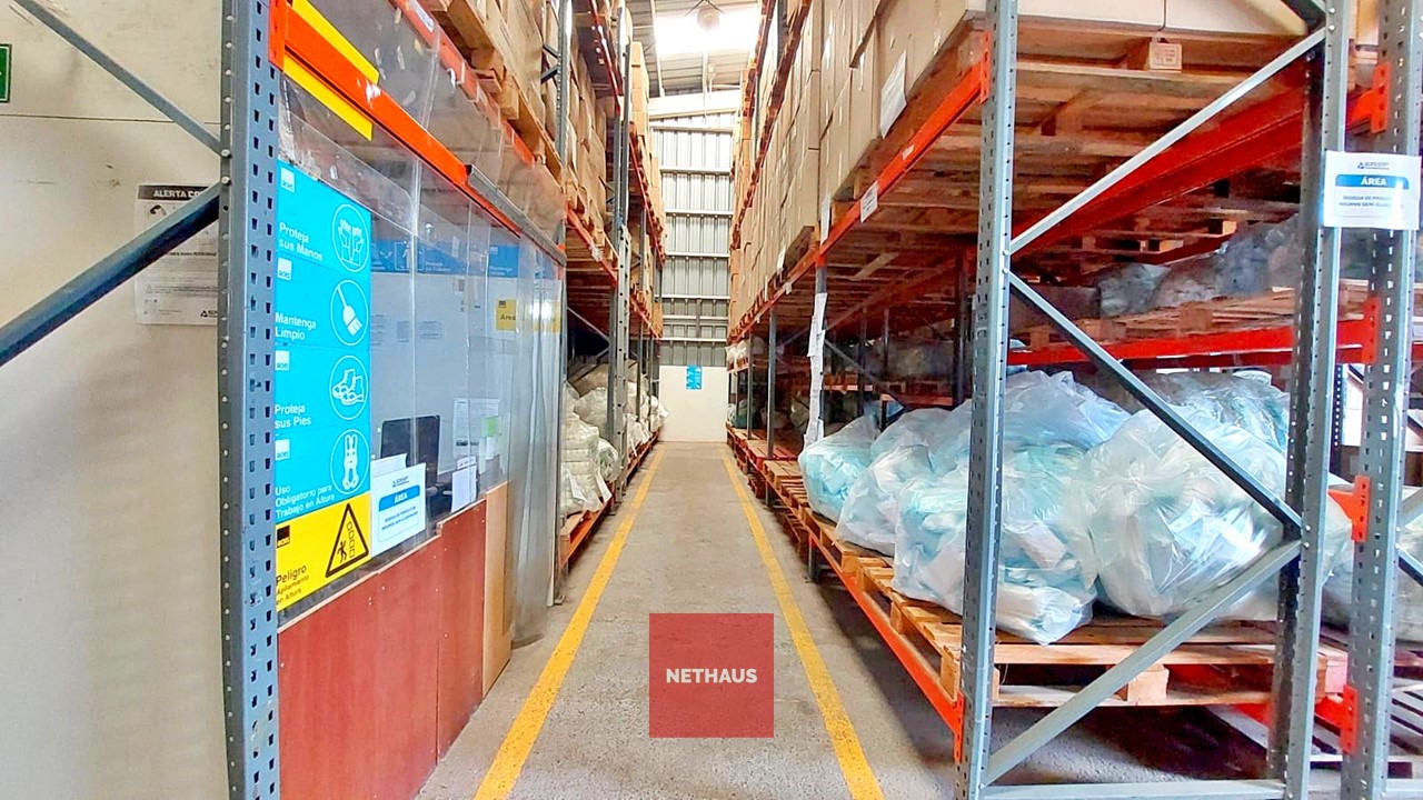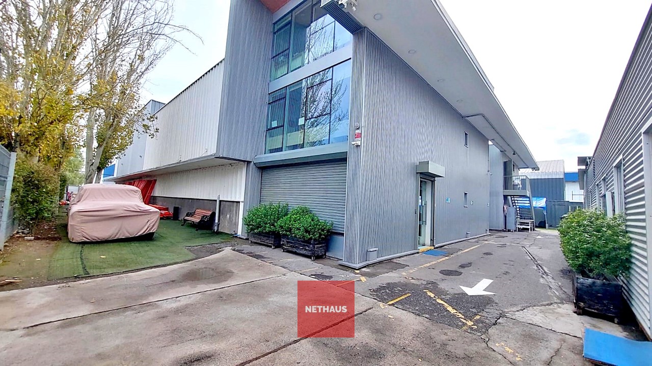 El galpón cuenta dos naves conectadas, con paredes y techos metálicos, suelo de radier afinado y una altura de 6 metros. Además, ofrece un entorno controlado con red de incendios, una oficina dentro del galpón y otra en el segundo piso, que se distribuye en plantas libres.