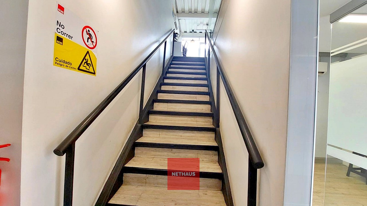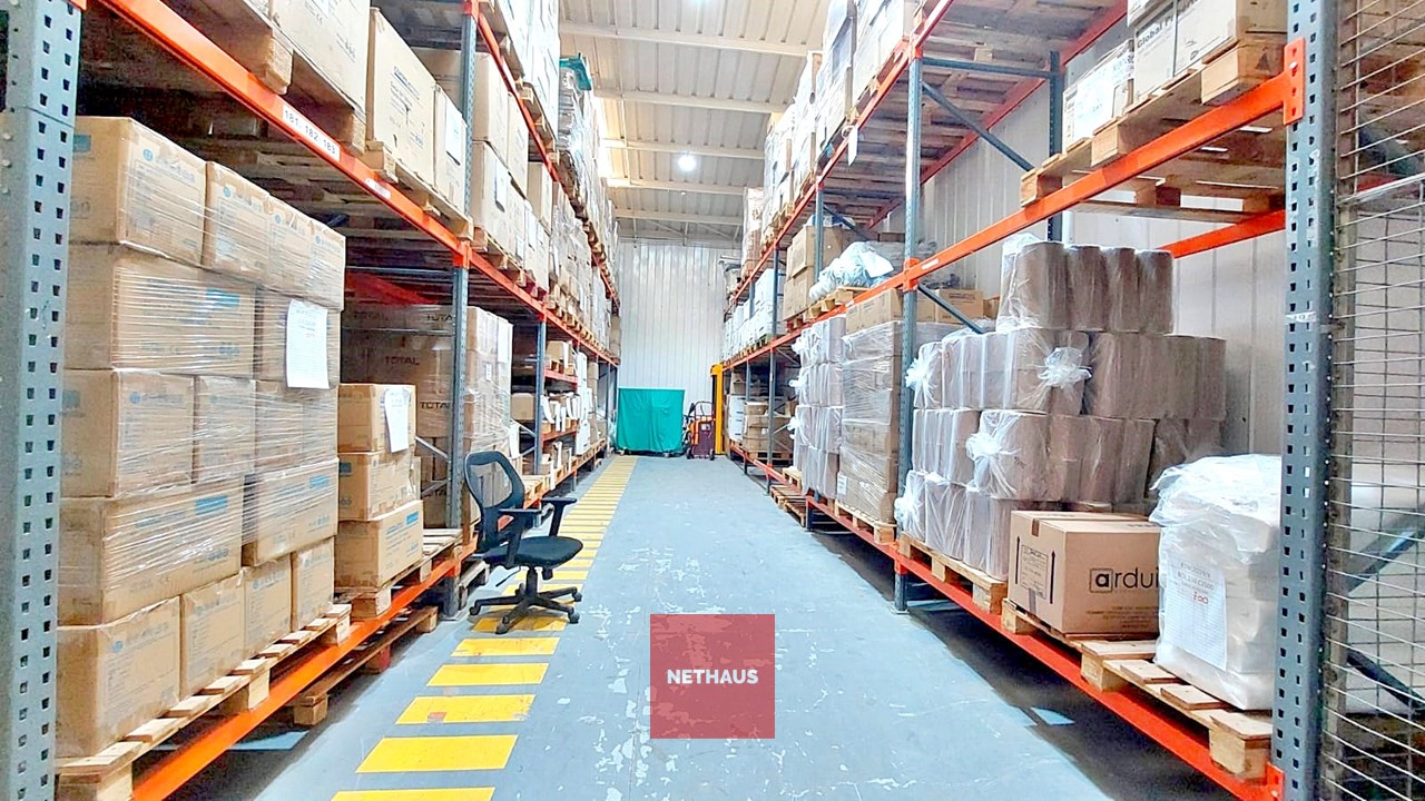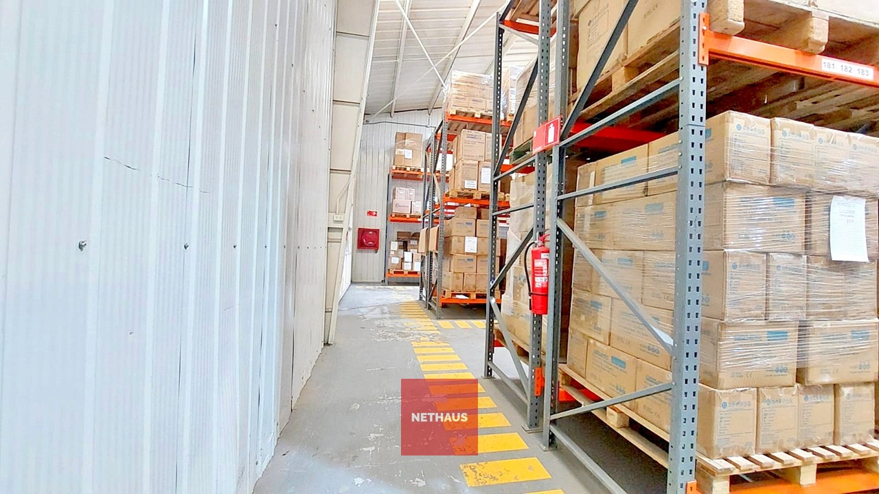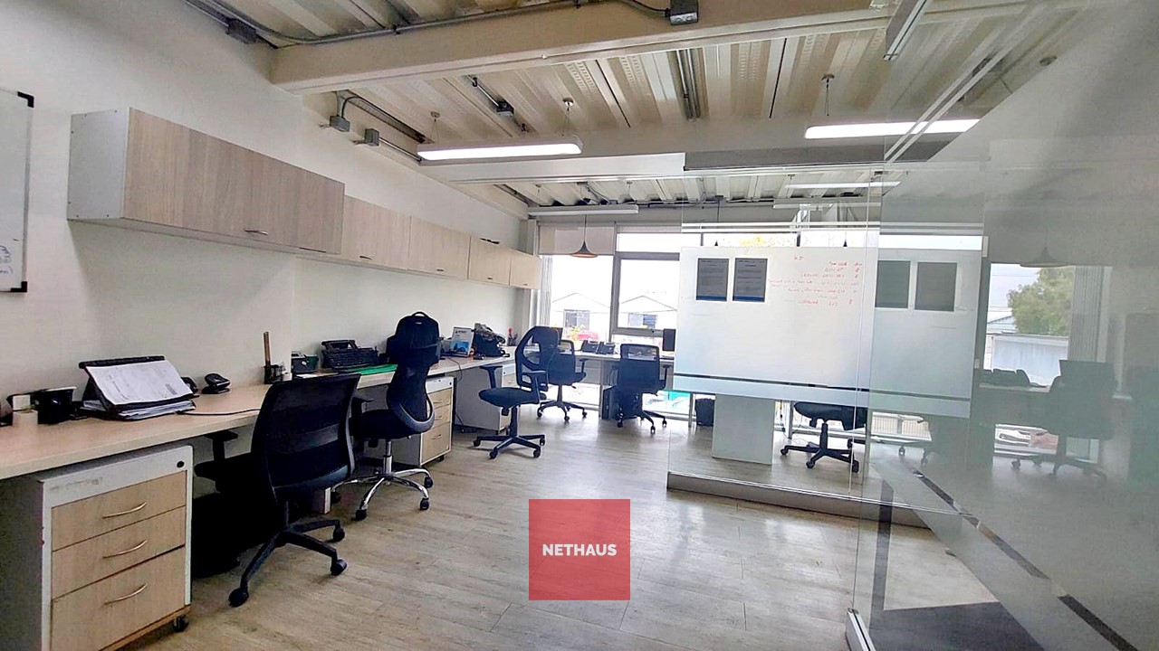 El galpón cuenta dos naves conectadas, con paredes y techos metálicos, suelo de radier afinado y una altura de 6 metros. Además, ofrece un entorno controlado con red de incendios, una oficina dentro del galpón y otra en el segundo piso, que se distribuye en plantas libres.
