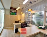 Las oficinas, de tres pisos con fachada vidriada, cuentan con baños independientes en cada nivel y espacios diáfanos con divisiones de vidrio en algunos sectores. Hay también un casino y baños en una construcción aparte.
