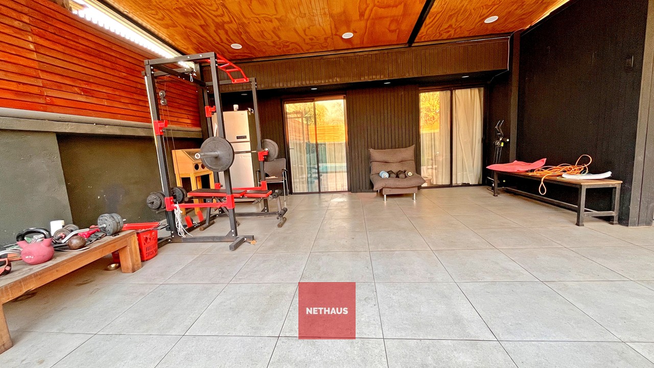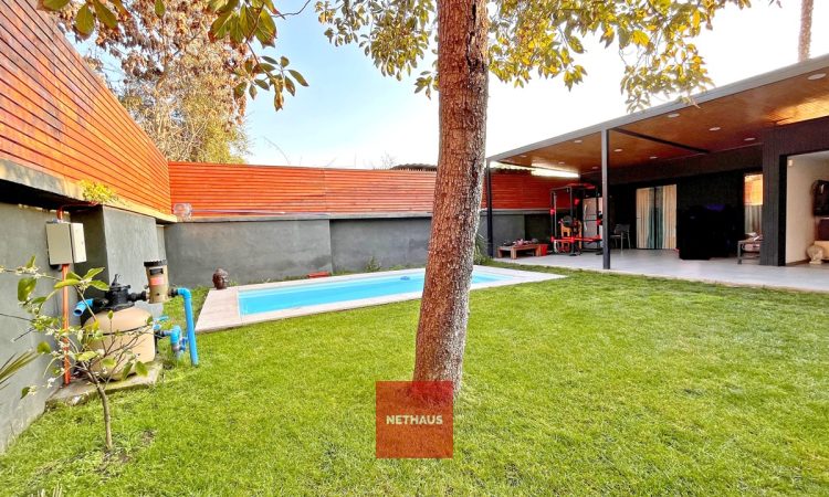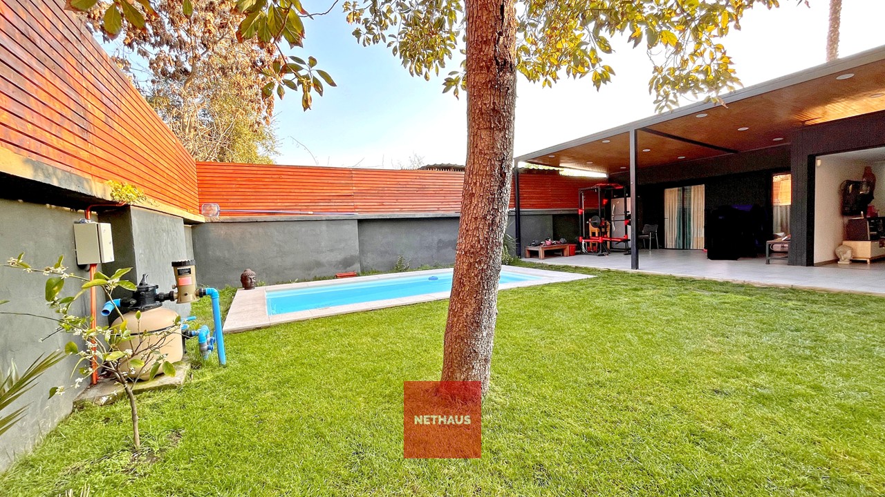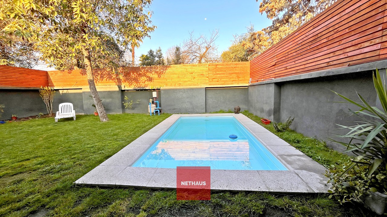 Acceso a Casa portón automático, 2 estacionamientos, living-comedor, cocina, 4 dormitorios, 4 baños, terraza posterior, patio, piscina.