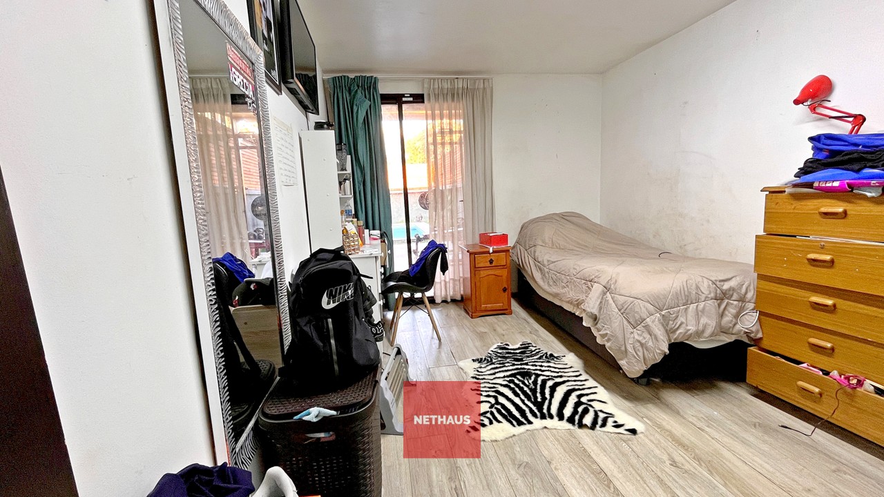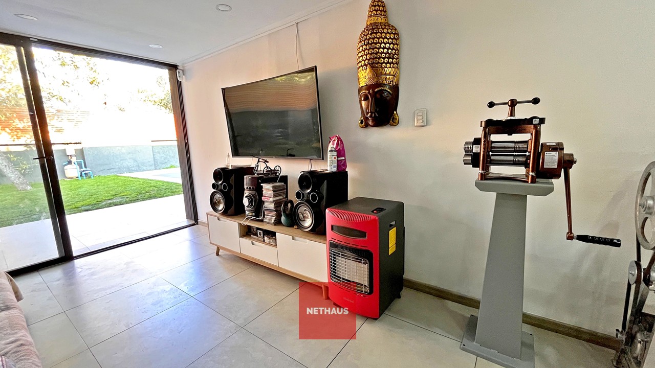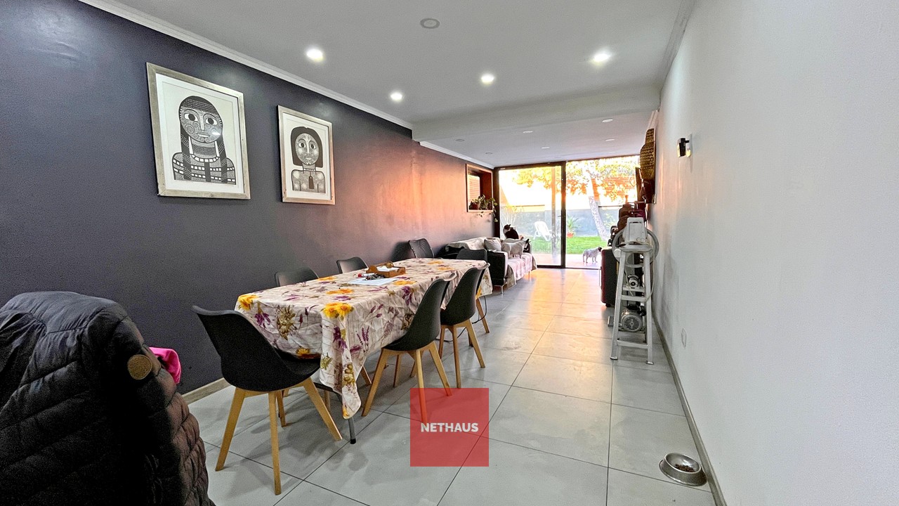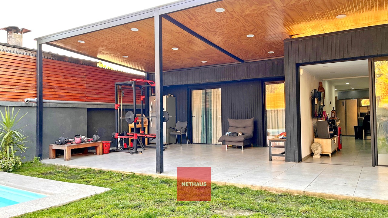 Acceso a Casa portón automático, 2 estacionamientos, living-comedor, cocina, 4 dormitorios, 4 baños, terraza posterior, patio, piscina.