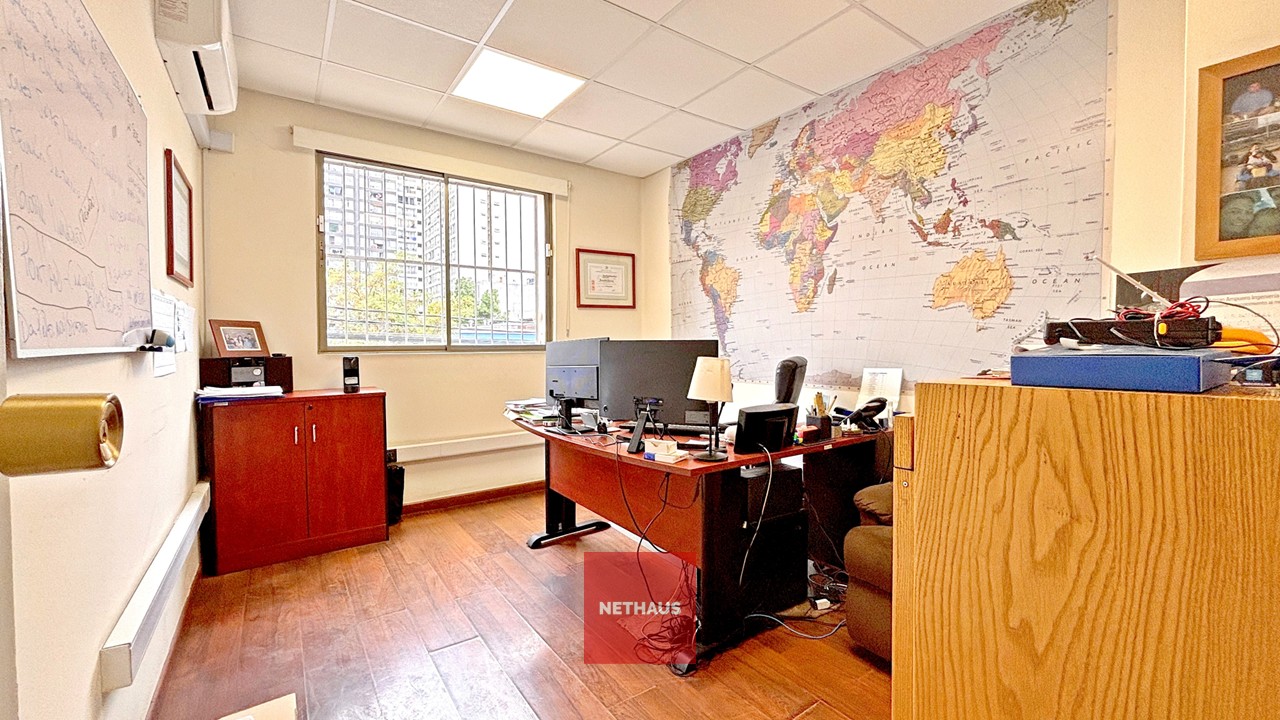 Segundo piso: recepción, 12 oficinas privadas (cada una con aire acondicionado casi nuevo), sala de reuniones, 5 baños, camarín con duchas, vestidores y lockers, kitchenette y comedor.