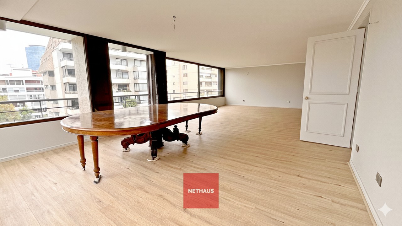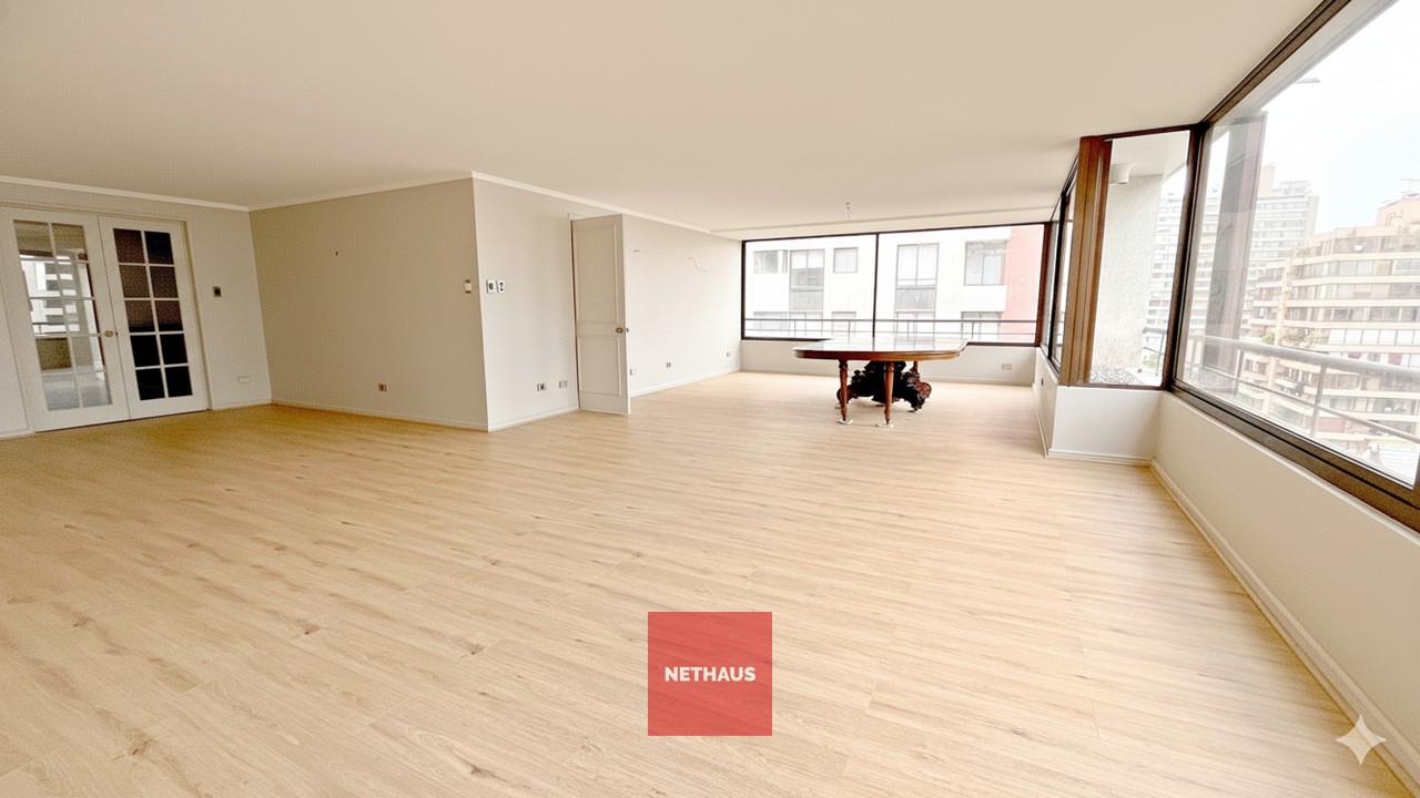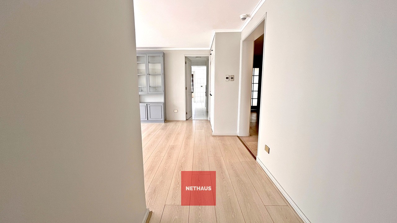El departamento cuenta con acceso directo desde el ascensor, otorgando máxima comodidad y privacidad. Al ingresar, destaca un amplio hall de entrada, decorado con una elegante puerta estilo francés y piso de mármol, que aporta distinción y carácter al espacio.