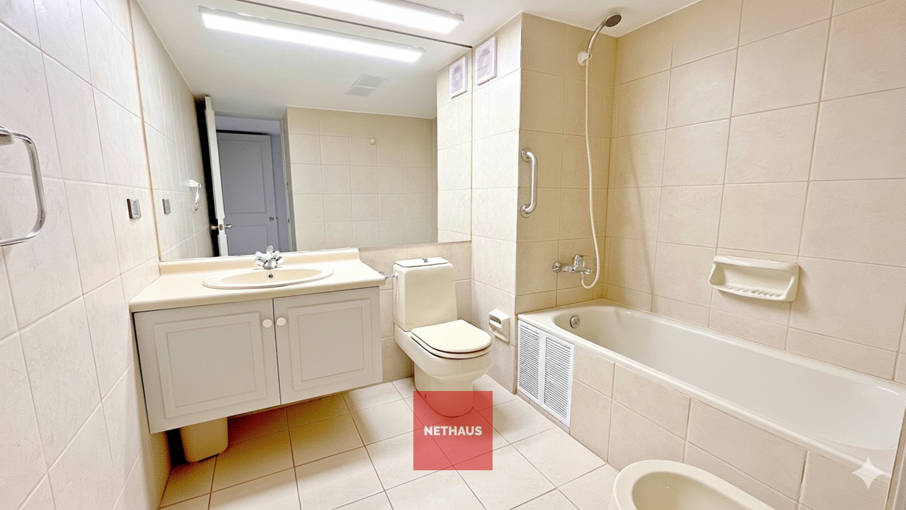 La cocina está completamente equipada e incluye horno empotrado, encimera, comedor de diario, conexión para lavavajillas y un práctico shaft de basura, que facilita las tareas de limpieza. La logia se encuentra incorporada, optimizando el uso del espacio.
